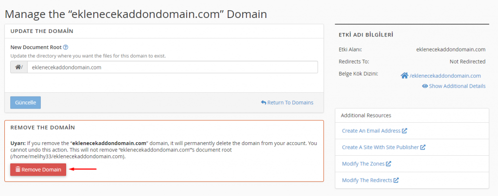 cPanel ile Ek (Addon) Domain Nasıl Kaldırılır?