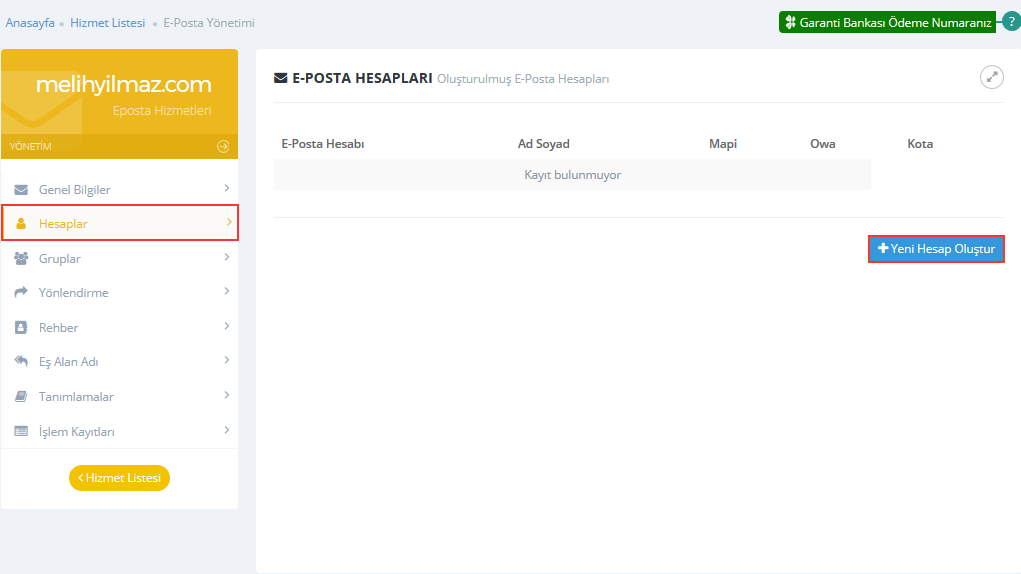 ▪ E-posta hesaplarınızı Outlook Exchange programlarına otomatik olarak tanımlayabilmeniz için oluşturduğunuz e-posta hesapları için Mapi özelliğini etkinleştirmeniz gerekmektedir.