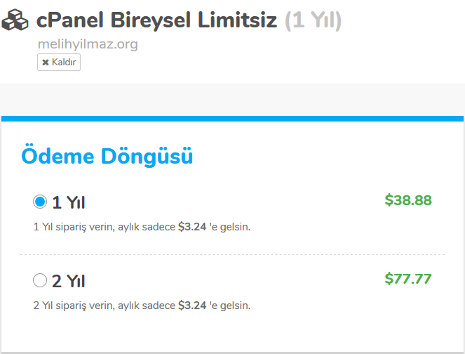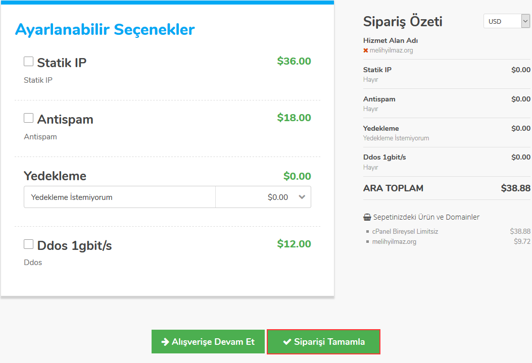 Ödeme Döngüsü ve Ayarlanabilir Seçenekler kısmından istediğiniz ek özellikleri secerek Siparişi Tamamla butonuna basınız.