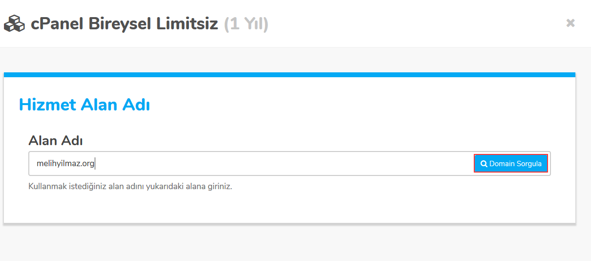 Alan Adını yazarak Domain Sorgula butonuna basınız.
