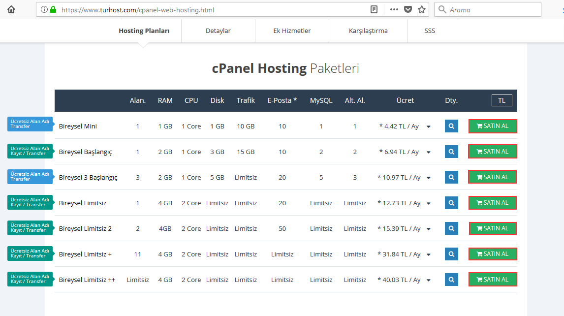 Açılan sayfadan Hizmet Alan Adı kısmına Hostinginizde kullanmak istediğiniz