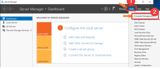 - Server Manager ana ekranında, sol üst köşdeki “Local Server” bölümünü tıklayın.