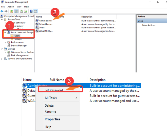 - Şifre değiştirilecek olan kullanıcıyı bulun ve sağ tıklayın.